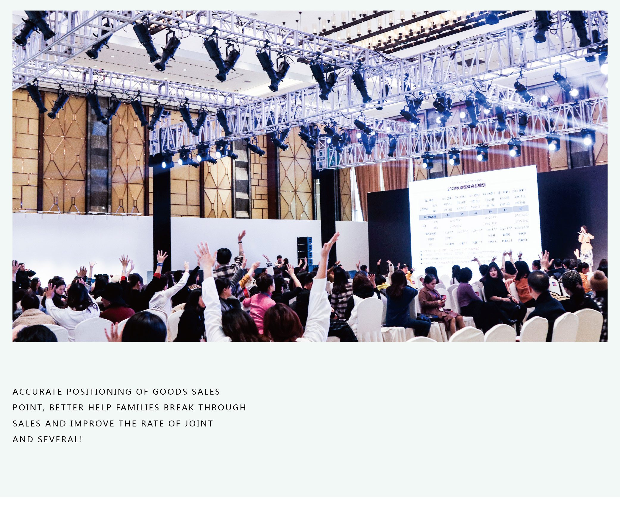 360°全景動態(tài)推演,推演導(dǎo)師根據(jù)終端市場分析色彩搭配技巧及流行趨勢,精確定位貨品賣點(diǎn),使家人們對本季貨品充滿信心,期待家人們的卓越業(yè)績。